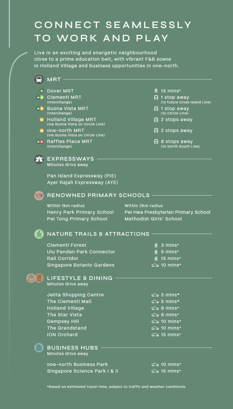 Situated in District 21, within the prestigious Mount Sinai / Pandan Valley neighbourhood, with top-tier educational institutions, commercial, dining and lifestyle options. Nature adventure awaits along the Rail Corridor, Ulu Pandan Park Connector, the hidden gem of the Clementi Forest, upcoming Old Jurong Line and Clementi Nature Trail.